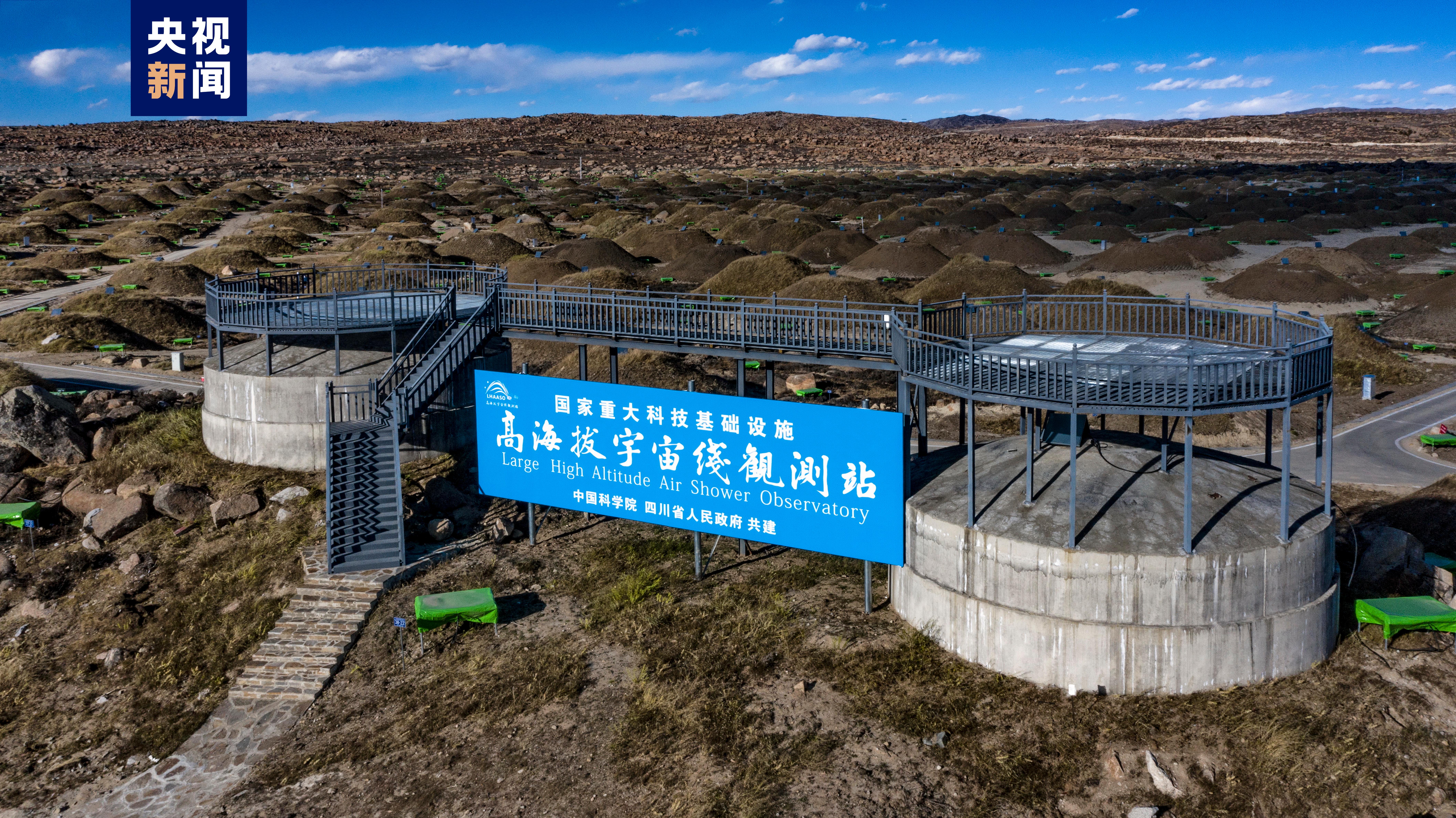 高海拔宇宙線觀測站位于四川省稻城縣海子山,平均海拔4410米,占地面積約1.36平方公里,由5216個電磁粒子探測器和1188個繆子探測器構(gòu)成的一平方公里地面簇射粒子探測器陣列、78000平方米的水切倫科夫探測器陣列、18臺廣角切倫科夫望遠(yuǎn)鏡等三大陣列組成。2015年由國家發(fā)展改革委批復(fù)立項,中國科學(xué)院和四川省人民政府共建,中國科學(xué)院成都分院與中國科學(xué)院高能物理研究所承擔(dān)建設(shè),2021年建設(shè)完成,核心科學(xué)目標(biāo)是探索高能宇宙線起源以及相關(guān)的宇宙演化和高能天體活動,同時開展暗物質(zhì)研究。