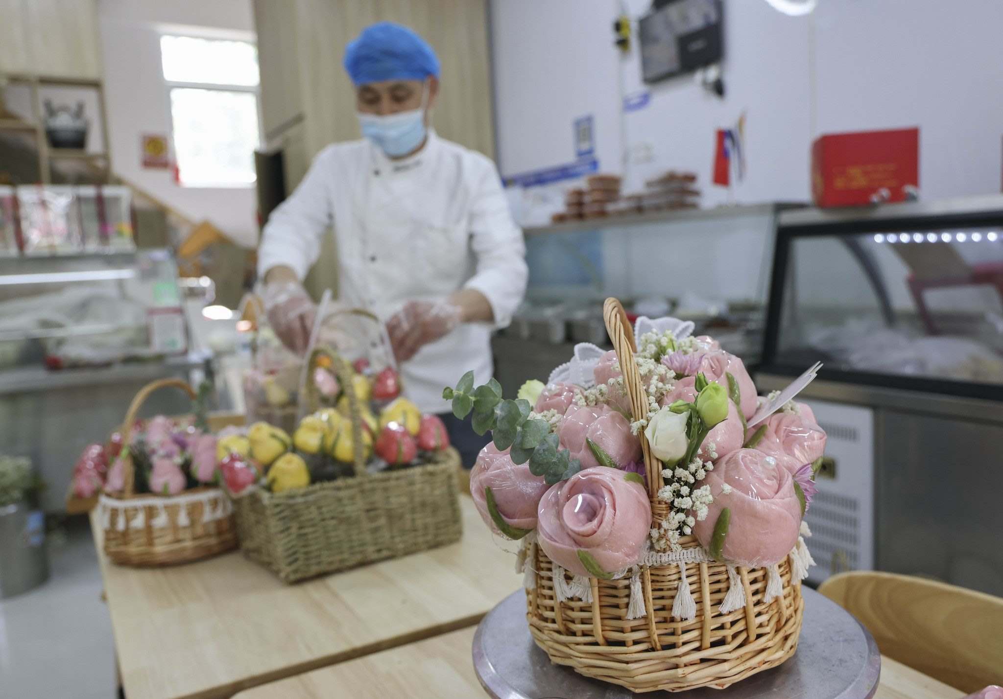 山東臨沂:母親節(jié)將至 花饃花籃走俏