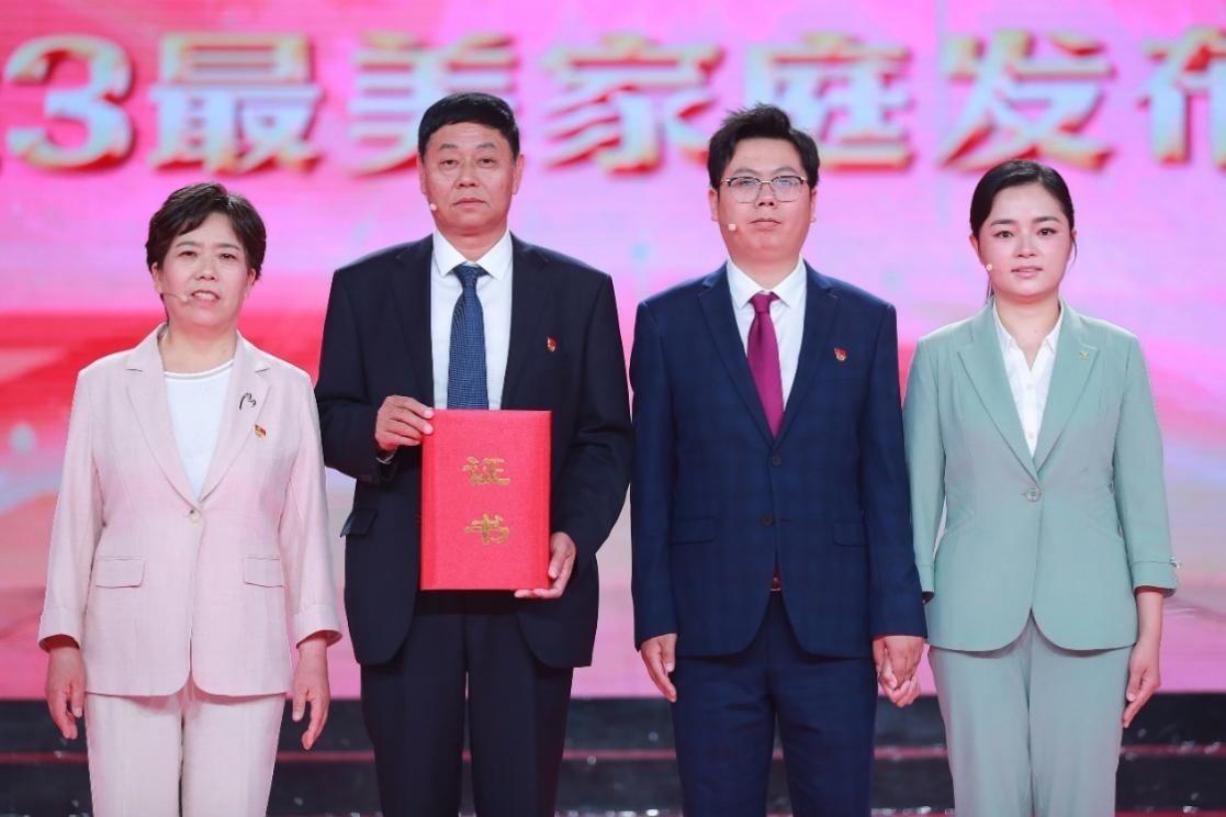 全國(guó)政協(xié)副主席、全國(guó)婦聯(lián)主席沈躍躍(右二)、 中宣部分管日常工作的副部長(zhǎng)、文化和旅游部部長(zhǎng) 胡和平(左一)、 全國(guó)婦聯(lián)黨組書(shū)記、副主席、書(shū)記處第一書(shū)記黃曉薇(右一) 為最美家庭代表頒獎(jiǎng)