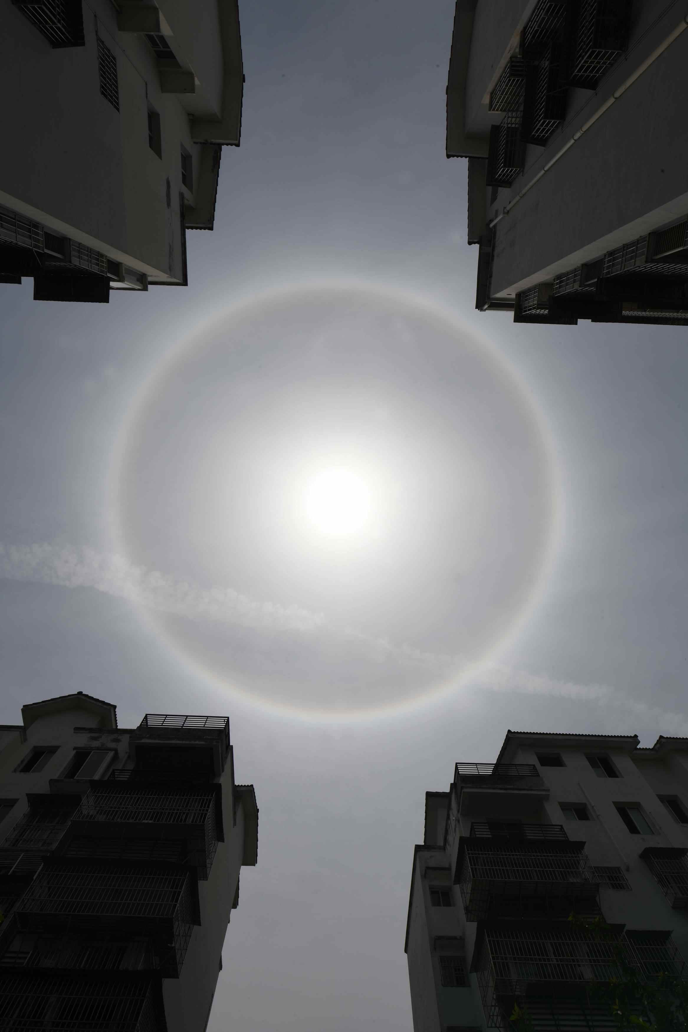 2023年5月15日中午,四川閬中,城市上空出現(xiàn)日暈景觀。 視覺中國