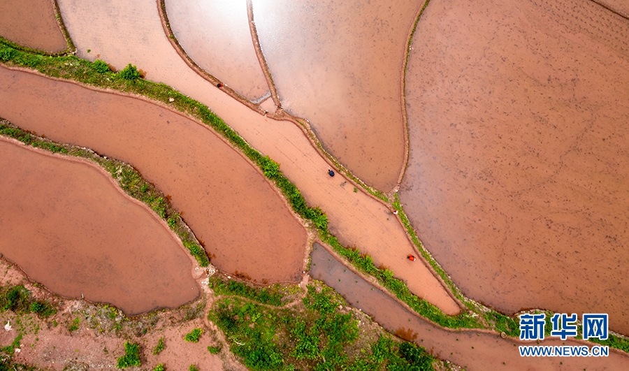 初夏時節(jié)的廟宇鎮(zhèn),農(nóng)田里水盈盈。新華網(wǎng)發(fā)(朱云平 攝)
