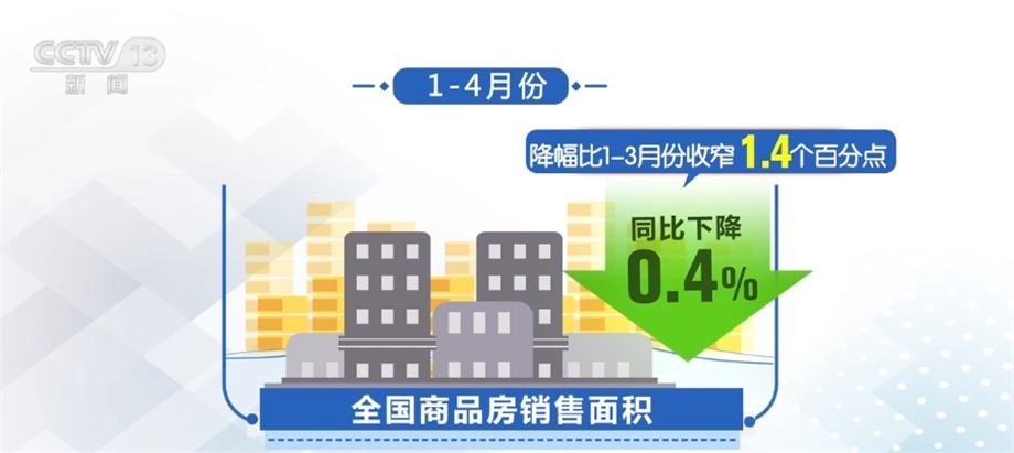 從銷售看,隨著政策效應(yīng)逐步顯現(xiàn),以及前期疫情積累的需求釋放,1—4月份,全國商品房銷售面積同比下降0.4%,降幅比1—3月份收窄1.4個百分點(diǎn)。銷售額增長8.8%,增速比1—3月份加快4.7個百分點(diǎn)。