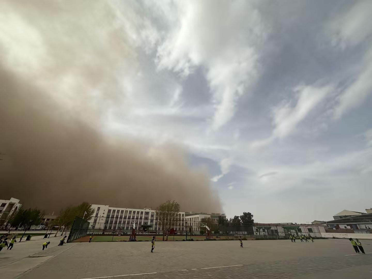內(nèi)蒙古二連浩特出現(xiàn)強(qiáng)沙塵暴 沙墻滾滾而來