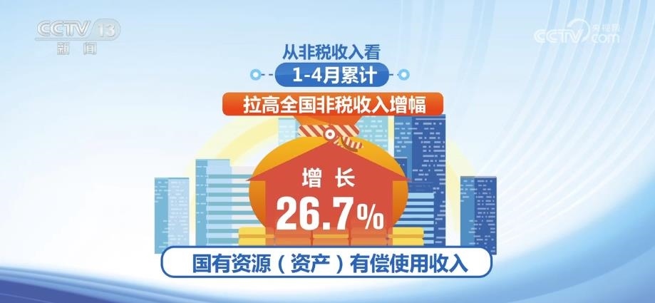 從非稅收入看,1月—4月累計,全國非稅收入同比增長6.8%。其中,國有資源(資產(chǎn))有償使用收入增長26.7%,拉高了全國非稅收入增幅。全國行政事業(yè)性收費收入和罰沒收入分別下降13.3%和18.7%。