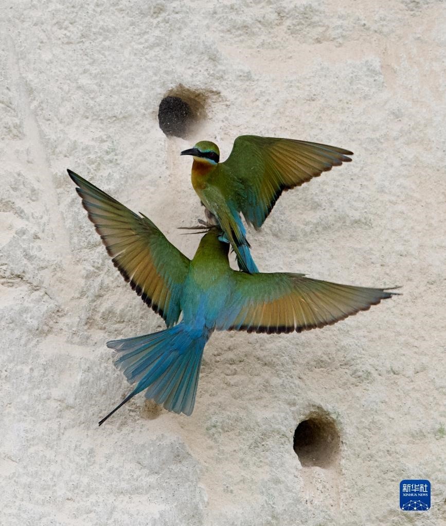 5月20日,兩只栗喉蜂虎在繁殖地筑巢。   新華社記者 魏培全 攝