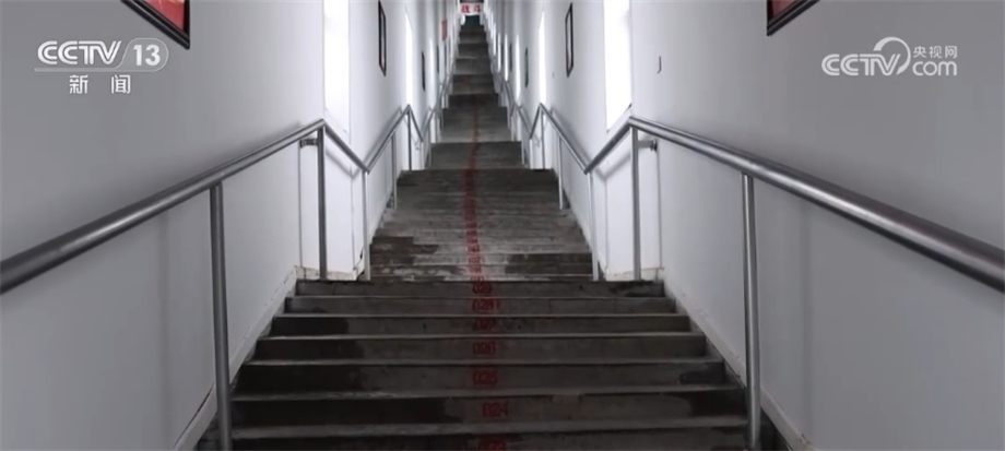 教員們下車后,海拔已超5000米,他們還需要攀登194級(jí)臺(tái)階的戰(zhàn)備通道,才能到達(dá)雷達(dá)陣地所在的山頂,臺(tái)階坡度達(dá)到60°。