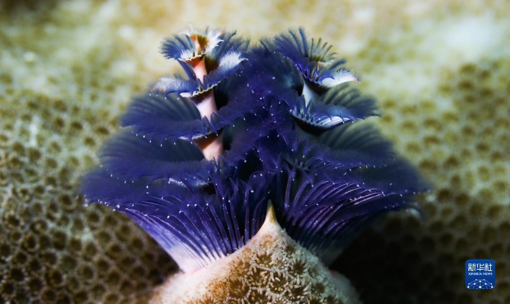 這是在蜈支洲島海域海洋牧場拍攝的圣誕樹管蟲(2021年5月23日攝)。