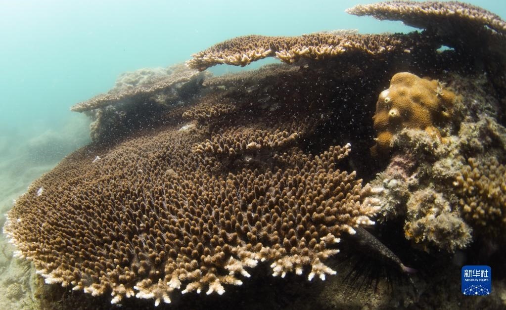 這是在蜈支洲島海域海洋牧場拍攝的風(fēng)信子鹿角珊瑚(5月17日攝)。