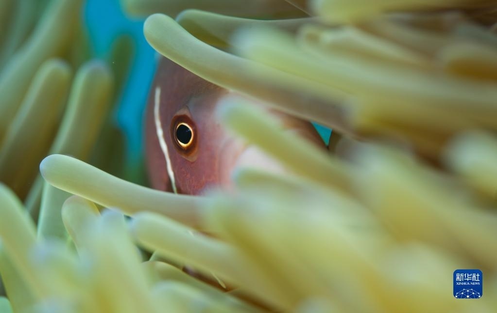 這是在蜈支洲島海域海洋牧場拍攝的小丑魚(5月17日攝)。 新華社記者 楊冠宇 攝