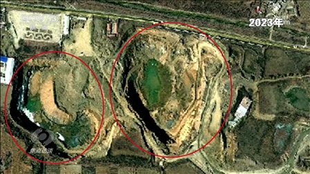 這兩個大坑真的如這位負責(zé)人所說變化不大嗎?記者查閱了從2018年至今的衛(wèi)星圖片,上面清晰顯示:2018年,北面大坑上面原來有廠房,還有道路,南面是一個尾礦庫。2019年,地塊南北同時出現(xiàn)新挖的坑,之后這兩個坑不斷擴大。到了2020年,北面的廠房已經(jīng)不見了,南面的坑也在變大。2021年、2022年,兩個大坑都在變大變深,逐漸靠攏,到了2023年,最終形成了現(xiàn)在的樣子。
