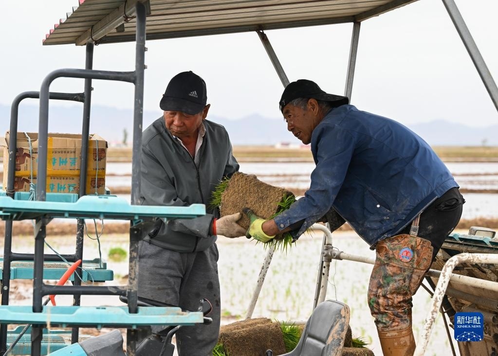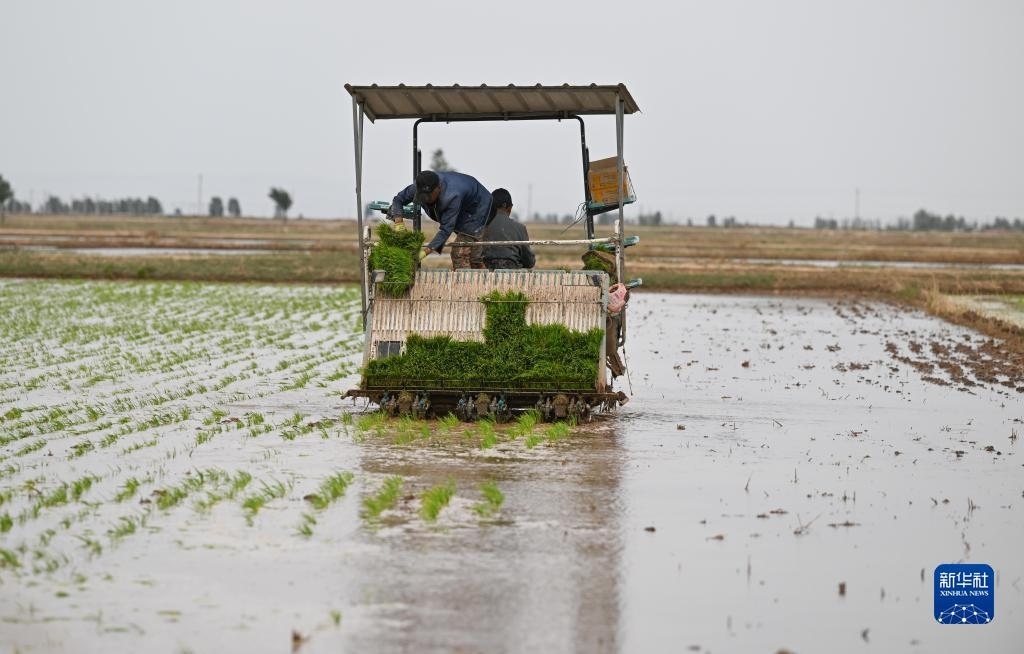 近日,內(nèi)蒙古達(dá)拉特旗3.8萬畝鹽堿地改良的水稻田迎來了插秧期,村民們在田間地頭開始忙碌。內(nèi)蒙古達(dá)拉特旗位于黃河岸邊,多年來,當(dāng)?shù)貙}堿化耕地實(shí)施改良,種植耐鹽堿水稻品種,幫助村民增收致富。   新華社記者劉磊攝