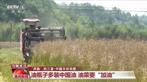 作為國內(nèi)主要食用油源,油菜籽的加工技術(shù)也在提升。鐮刀割菜、摔打脫籽的傳統(tǒng)收割方式,逐漸被智能機械化替代。一臺收割機能先后完成脫粒、粉碎油菜果殼和秸稈以及噴撒還田的全流程,還大大降低了菜籽丟損率。傳統(tǒng)人工收割一天只能收一畝,機械收割一天能收60到70畝,也就是說,一臺收割機相當(dāng)于至少60個勞動力。不得不感嘆,農(nóng)業(yè)現(xiàn)代化,真香。今年夏收,油菜面積預(yù)計達到1億畝以上,增加1000萬畝左右。為了我們的“油瓶子”多裝中國油,中國油菜要“加油”。