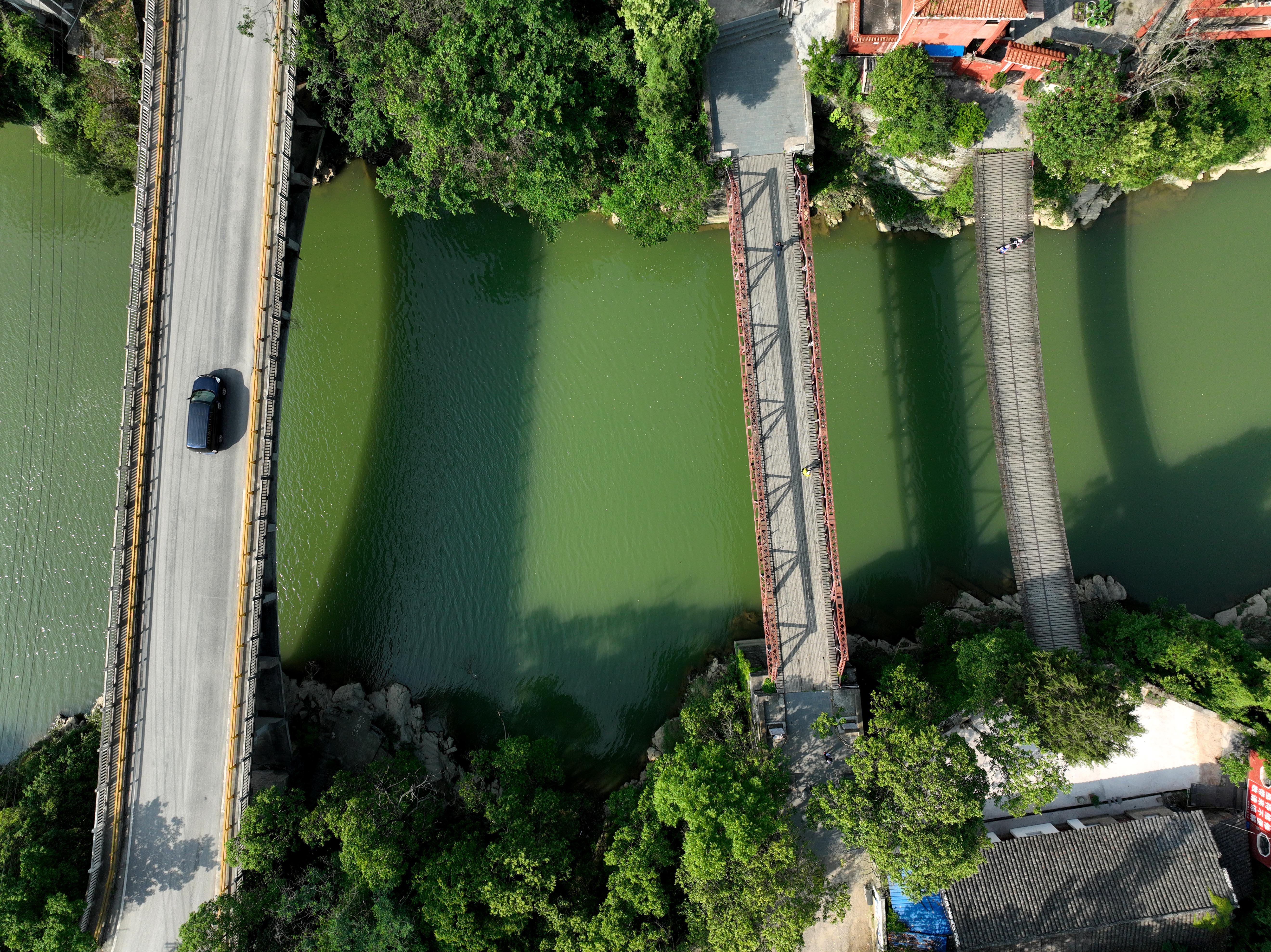 2023年5月27日拍攝的貴州省黃平縣重安鎮(zhèn)“三朝橋”(無人機(jī)照片)。 (寧堅(jiān) 趙軍)