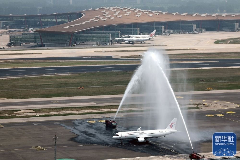5月28日,C919首個(gè)商業(yè)航班東航MU9191飛抵北京首都國(guó)際機(jī)場(chǎng)。新華社記者鞠煥宗攝
