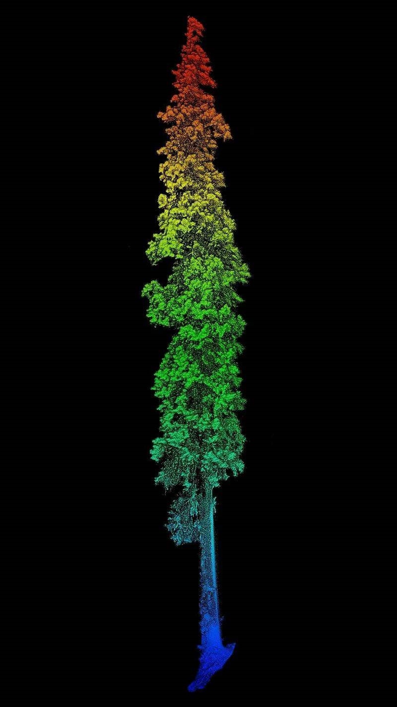通過無人機與背包激光雷達相結(jié)合,對西藏柏木巨樹聚生區(qū)域進行精準(zhǔn)測量,得到了巨樹群的精準(zhǔn)三維點云模型。經(jīng)過高度測量,發(fā)現(xiàn)其中一棵西藏柏木高達102.3米,該發(fā)現(xiàn)同時刷新了中國與亞洲的最高樹紀錄,躋身按樹種排名的世界最高樹列表,位列第二。研究團隊獲取了該樹的精細三維點云數(shù)據(jù),測量其胸徑為293厘米,并采用無人機攝影的方式獲取了巨樹等身照。