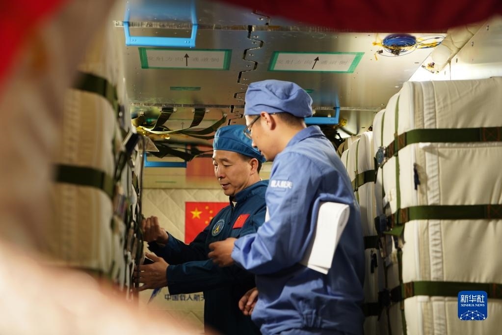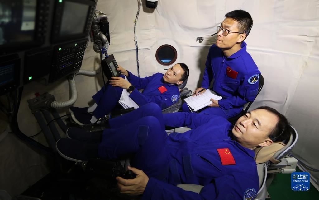 神舟十六號(hào)航天員乘組在人船合練中交流(2022年9月23日攝)。新華社發(fā)(徐部 攝)