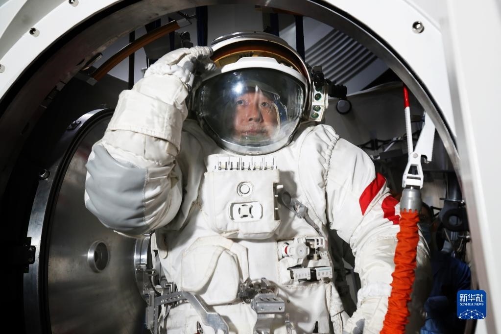 神舟十六號(hào)航天員景海鵬進(jìn)行出艙程序訓(xùn)練(2023年5月5日攝)。新華社發(fā)(徐部 攝)