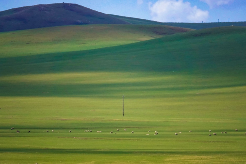 正值初夏,內蒙古呼倫貝爾草原陸續(xù)進入返青期,綠草如毯,風景如畫。 呂昊俊 攝