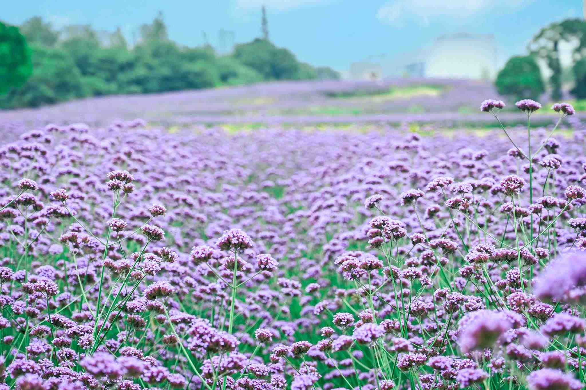 武漢:馬鞭草綻放 紫色小花隨風搖曳