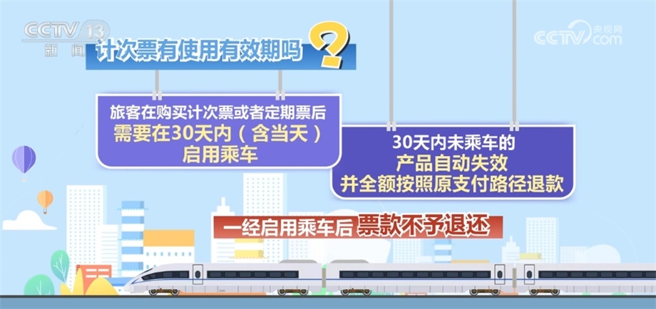 旅客在購買計(jì)次票或者定期票后,需要在30天內(nèi)(含當(dāng)天)啟用乘車,30天內(nèi)未乘車的,產(chǎn)品自動(dòng)失效并全額按照原支付路徑退款。一經(jīng)啟用乘車后,票款不予退還。
