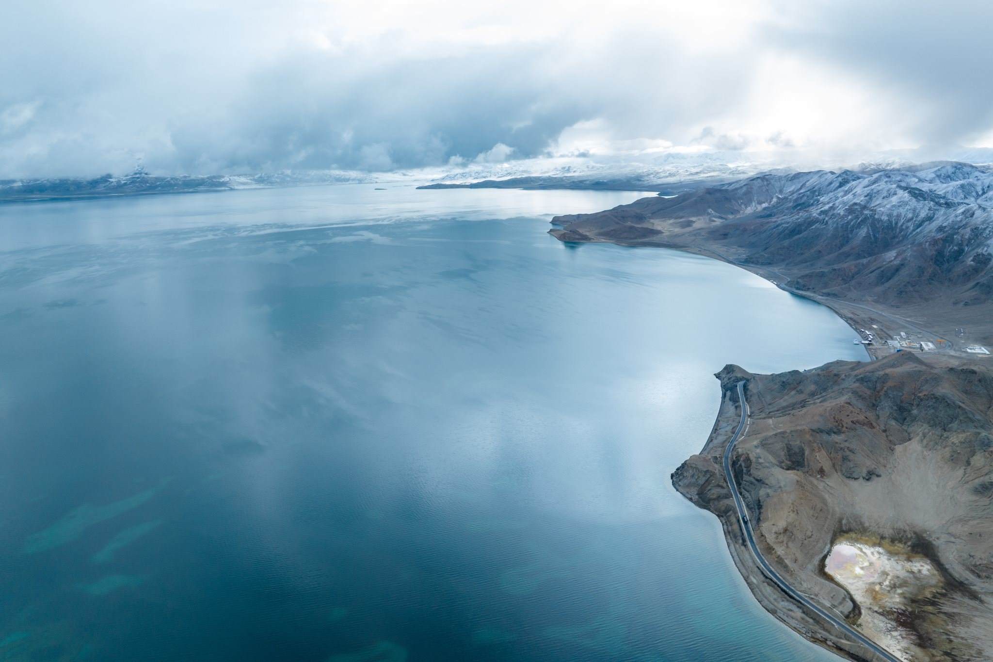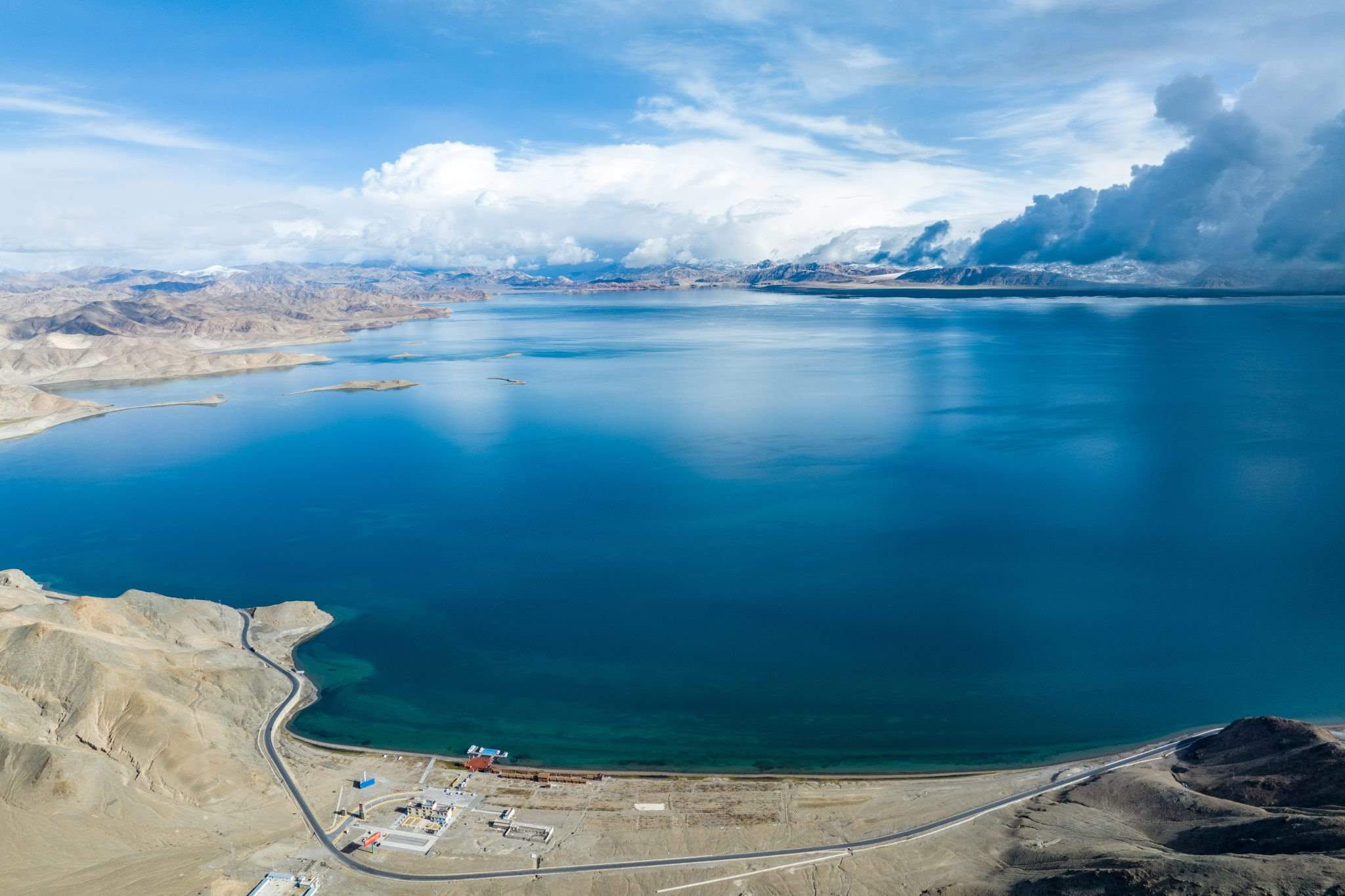 2023年6月6日,西藏阿里,日土縣班公湖,湛藍(lán)的湖水、潔白的雪山、奇特的沿湖景觀,構(gòu)成一幅夏日醉美畫卷。視覺中國(guó)