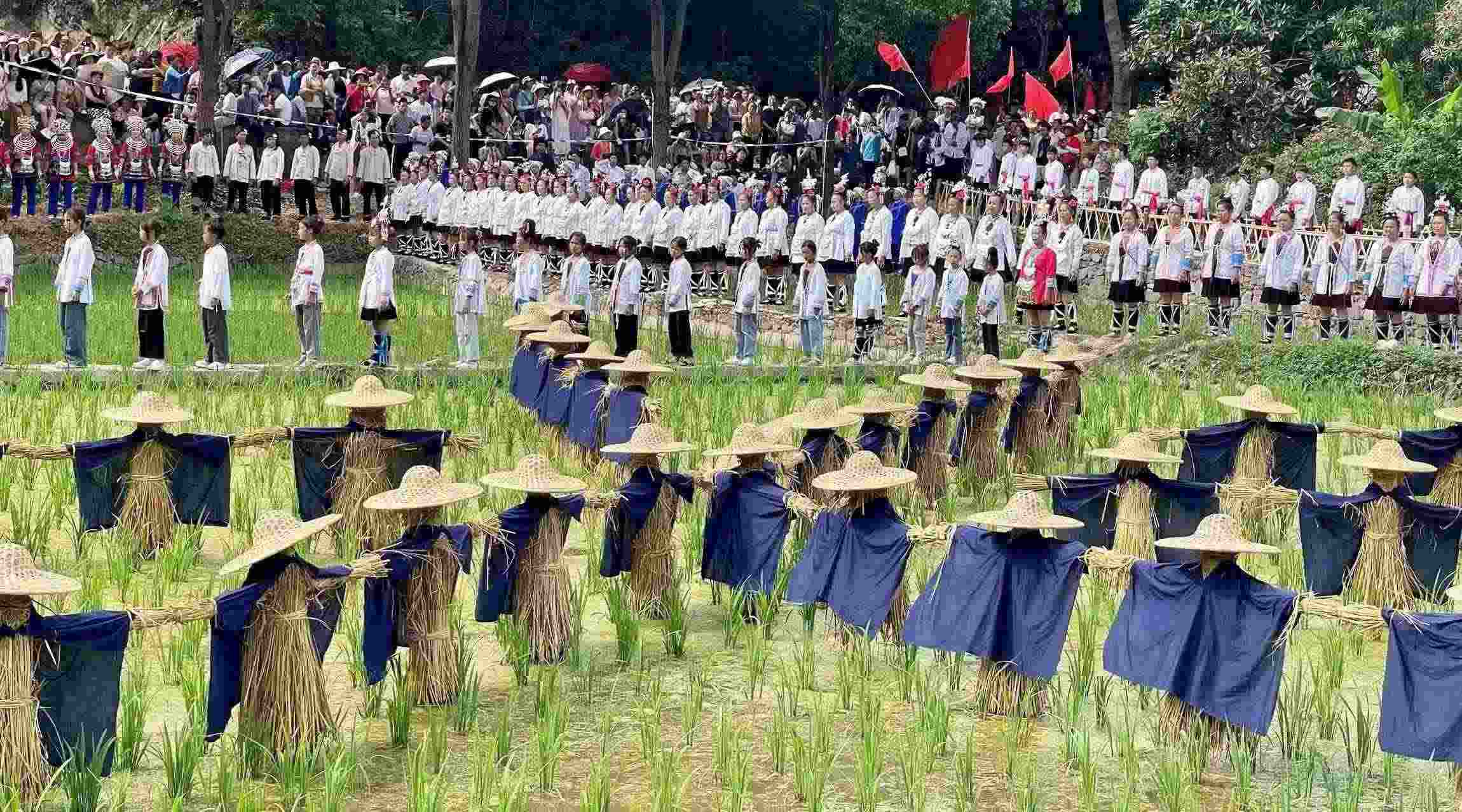 2023年6月10日,侗族同胞在貴州省黎平縣肇興侗寨田園實景展示侗族大歌。 (寧堅 鄧永生)