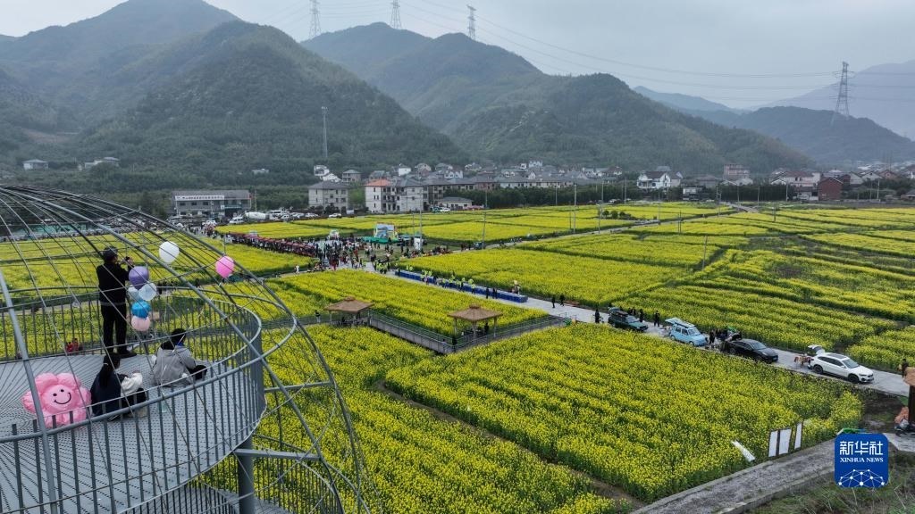 在浙江杭州臨安區(qū)青山湖街道郎家村“共富稻田”,游客乘坐田野小火車在油菜花地里感受春日美景(4月1日攝)?!肮哺坏咎铩倍ㄎ欢喙δ芴飯@農(nóng)旅綜合體,陸續(xù)打造了妙哉花園、稻田觀光道、稻田餐廳、稻田茶吧等鄉(xiāng)村旅游特色節(jié)點(diǎn),吸引城市居民前來體驗(yàn)戶外農(nóng)田生活。新華社記者 徐昱 攝