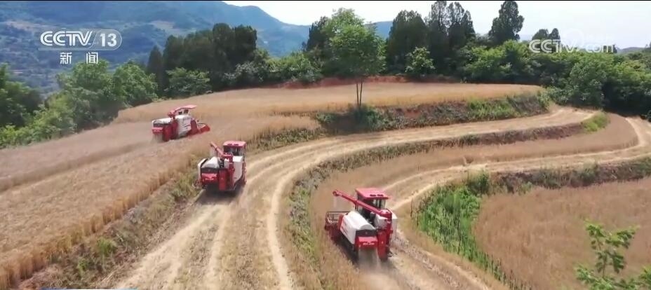 央視網(wǎng)消息:眼下,甘肅隴南市徽縣的15萬畝小麥陸續(xù)成熟。針對農田山地多、大型機械設備難以作業(yè)的情況,當?shù)亟M織小型農機進入田間地頭,幫助村民收割小麥。