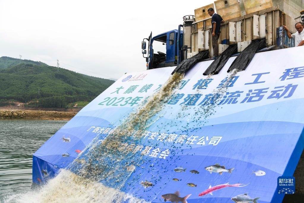 當日,位于廣西桂平市的大藤峽水利樞紐工程舉行夏季魚苗放流活動。新華社記者 曹祎銘 攝