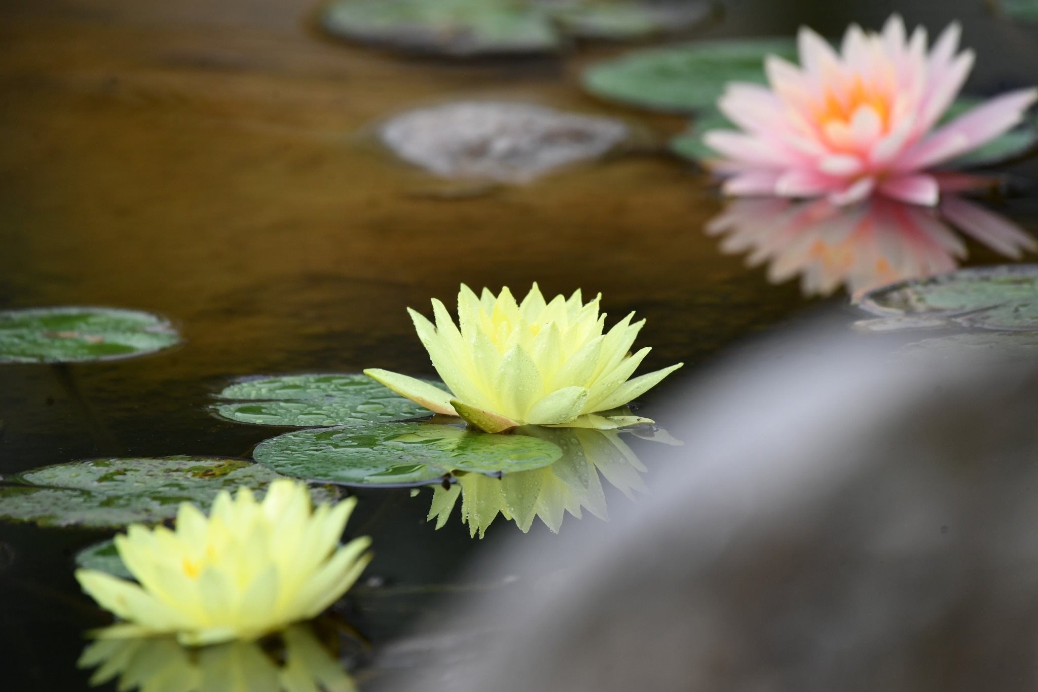 2023年6月15日,貴州省仁懷市,楠竹林公園的睡蓮嬌艷綻放,朵朵睡蓮倒映水中。視覺中國(guó)