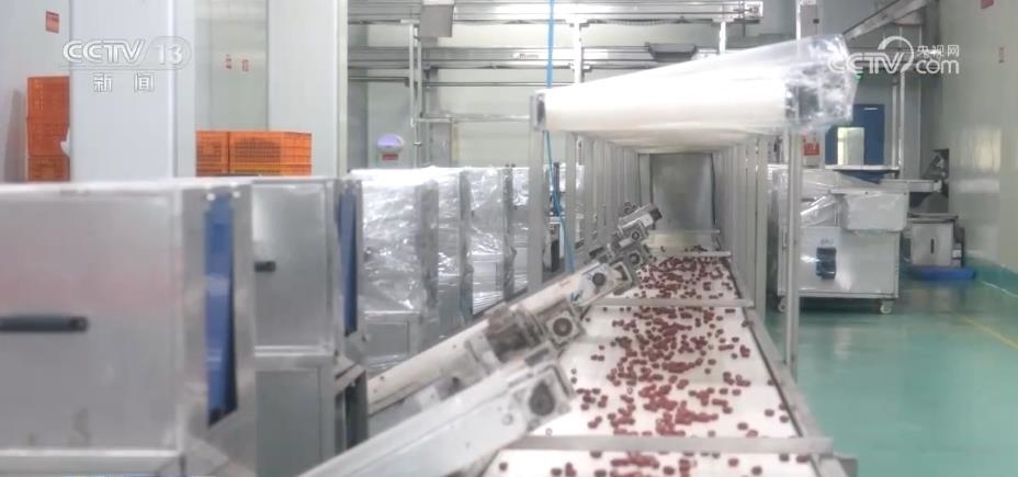 央視網(wǎng)消息:眼下,河南新鄭紅棗迎來(lái)盛果期。棗園里,顆顆紅棗像串成寶石項(xiàng)鏈一般掛滿枝頭,采收工人正忙著打棗、收棗,一派繁忙景象。