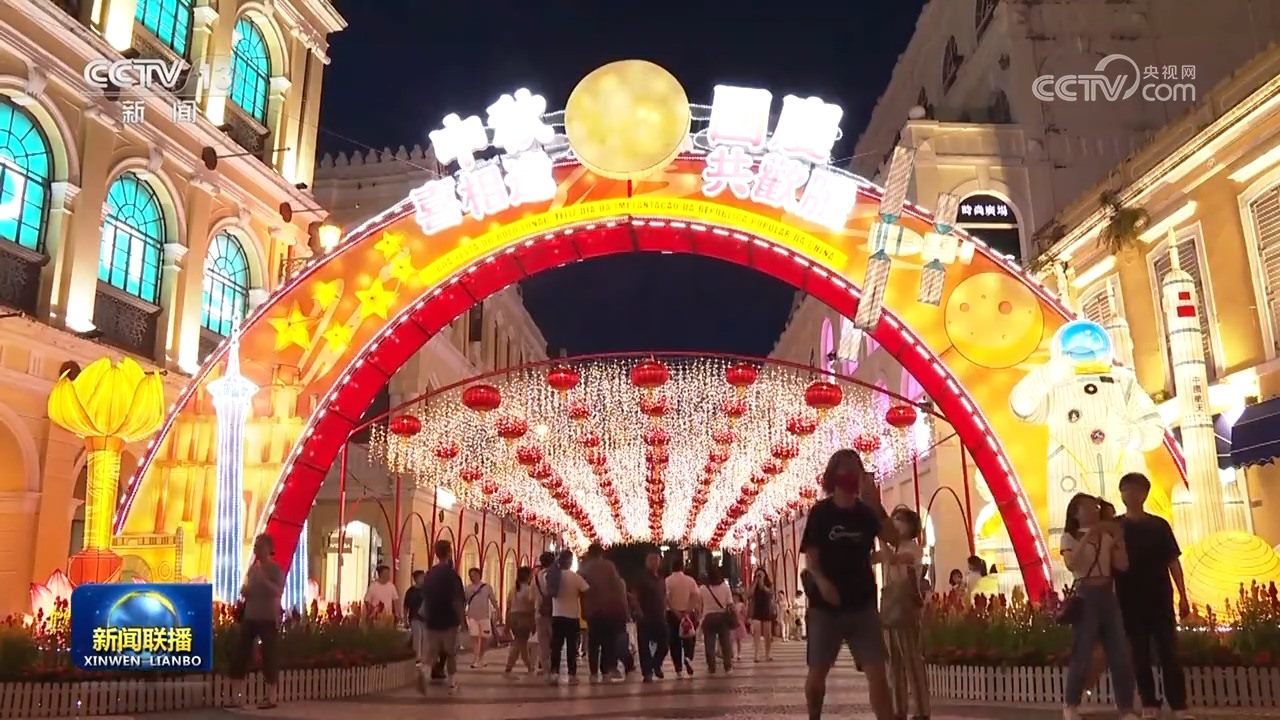 香港大街小巷張燈結(jié)彩,喜迎中秋、國(guó)慶,彩燈、走馬燈、各色花燈裝點(diǎn)著城市夜色。在澳門,以“中秋喜相逢 國(guó)慶共歡騰”為主題的燈飾點(diǎn)亮大街小巷,吸引大批市民和游客打卡留念。