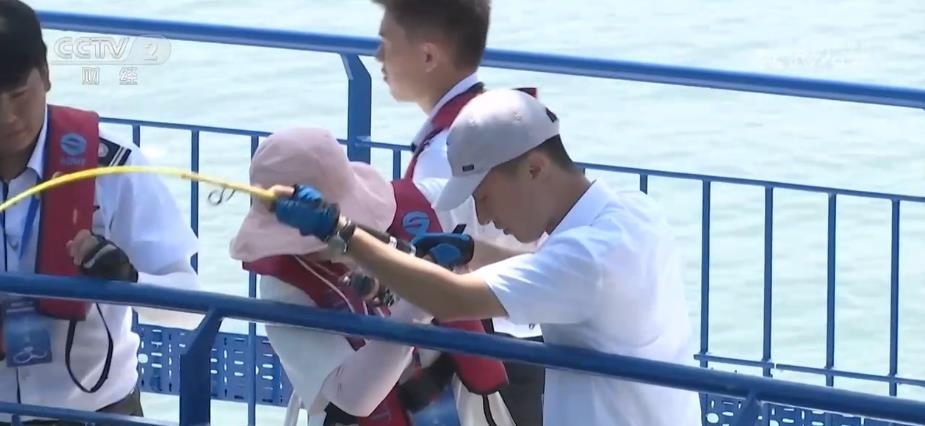 煙臺(tái)臺(tái)記者 朱程媛:這里是(煙臺(tái))萊山區(qū)四十里灣海域的“耕海一號(hào)”海洋牧場(chǎng)綜合體,不少的游客正在一期垂釣區(qū)進(jìn)行垂釣。從空中往下看,整個(gè)一期項(xiàng)目的造型其實(shí)就像是3個(gè)漂亮的花瓣,而這3個(gè)花瓣其實(shí)是3個(gè)養(yǎng)殖網(wǎng)箱,每年可以養(yǎng)殖優(yōu)質(zhì)魚(yú)類20萬(wàn)尾,年產(chǎn)量達(dá)到15萬(wàn)公斤。