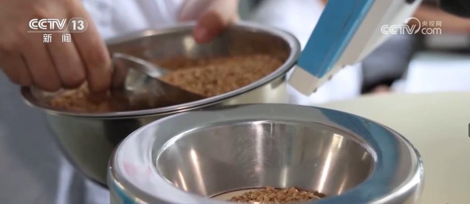 在山東夏津縣一家面粉加工企業(yè),工作人員正對(duì)2023年新收的小麥進(jìn)行容重和蛋白質(zhì)含量檢測。結(jié)果顯示,與往年相比,這兩個(gè)指標(biāo)均有提升。
