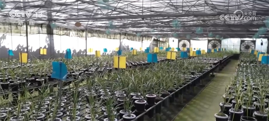 總臺央視記者 陳燁煒:今天室外的溫度在38℃左右,但是在蘭花的種植棚里是28℃左右,為什么室外和室內(nèi)的溫度能相差10℃?原因就在于在這個(gè)棚里面被安裝上了一系列的智能設(shè)備,一旦里面的溫度超過了設(shè)定值,這里的水簾、噴霧設(shè)備就會自動開啟,來進(jìn)行一系列的調(diào)節(jié),以此來達(dá)到這些蘭花最適宜生長的一個(gè)環(huán)境。