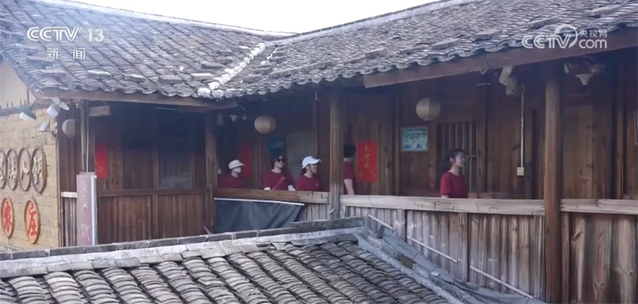 總臺央視記者 陳燁煒:我身后的這棟樓已經(jīng)有100多年的歷史,鵝卵石鋪成的小院、青磚砌成的外墻以及木質(zhì)結(jié)構(gòu)的房屋,處處在向我們傳遞著古老的文化氣息,多年前這里曾經(jīng)是當(dāng)?shù)鼐用窬幼〉姆课?,而近幾年?jīng)過改造后,已經(jīng)成了很多外地游客慕名前來的網(wǎng)紅打卡地。