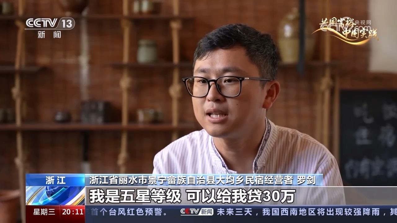 浙江省麗水市景寧畬族自治縣大均鄉(xiāng)民宿經(jīng)營者 羅劍:以我的個(gè)人(生態(tài)信用)等級,我是五星等級,可以給我貸30萬,而且我了解了年利率,它是3.85%,算起來是最低的,所以說我就去貸了。