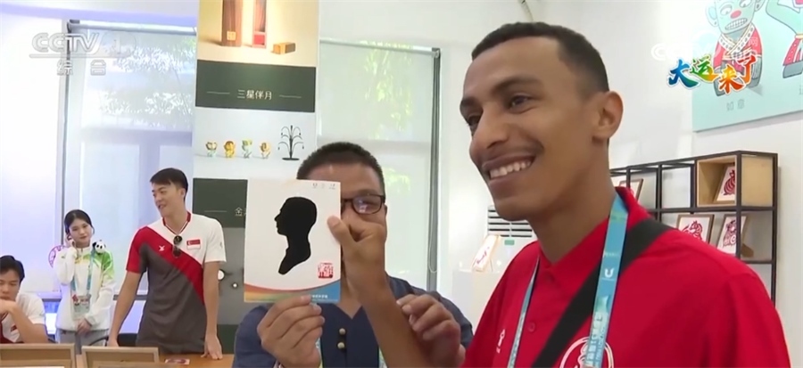一雙巧手、一把剪刀、一張紅紙,互動(dòng)體驗(yàn)中心里,神奇的剪紙也吸引了很多運(yùn)動(dòng)員參與體驗(yàn)。除了可以親手剪出一只只可愛(ài)的大熊貓,還可以讓非遺傳承人現(xiàn)場(chǎng)為自己量身定做“剪影”。