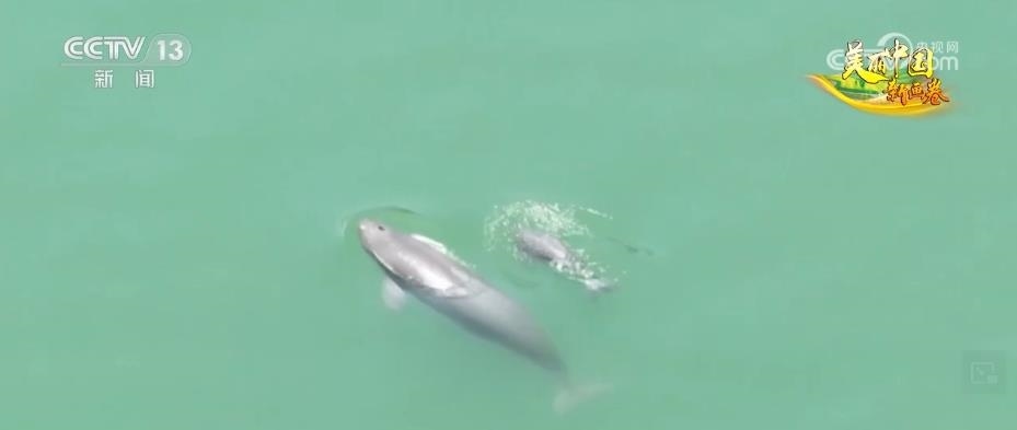在長江邊,微笑天使江豚最近頻頻躍出水面,它們在江中追著小魚轉圈圈。再看這個家族,江豚媽媽在其他家族成員的守護下,帶著江豚寶寶學習本領,抬頭挺胸、換氣下沉,吸引不少市民拍照打卡。