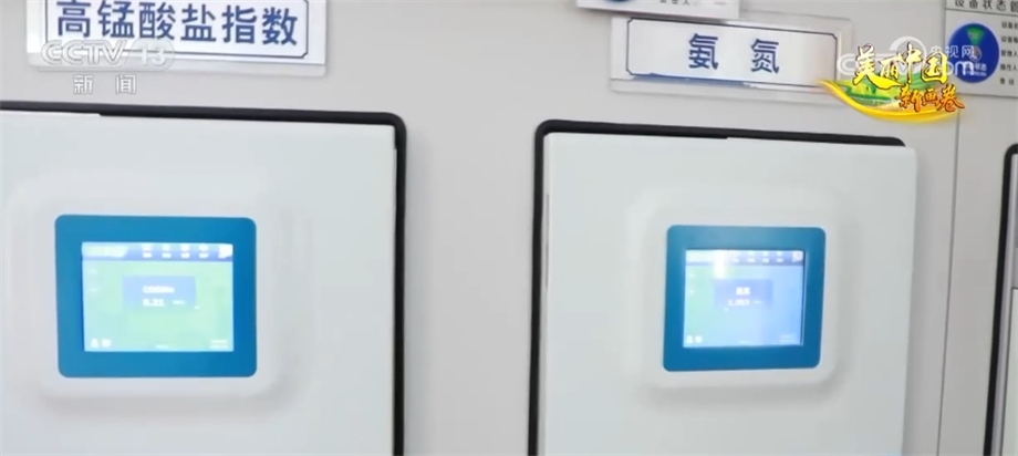 我手里拿的是剛從汾河入黃口取出的水,那么這水的指標到底怎么檢測?這里有臺儀器,每四個小時就自動對旁邊的汾河水進行采樣檢測,通過各項數(shù)據(jù)的分析來判斷汾河水的水質是否達標。