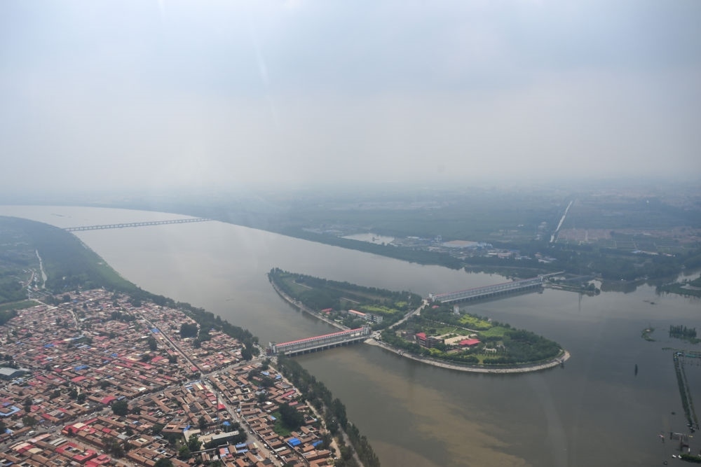 這是從直升機上拍攝的獨流減河進洪閘,大清河與子牙河在此匯入獨流減河(8月8日攝)。新華每日電訊記者孫凡越攝