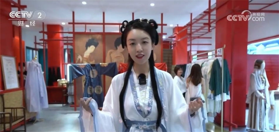 總臺央視記者 劉藝涵:沉浸式古鎮(zhèn)之旅一定少不了換裝體驗,也是不少游客來到這里首選的項目。目前,園區(qū)內(nèi)像這樣的古裝店共有7家,提供租賃、銷售、化妝造型和攝影等服務(wù)。現(xiàn)在我身上的這件就是店里的一款經(jīng)典的漢服,全天的租賃價格是199元。