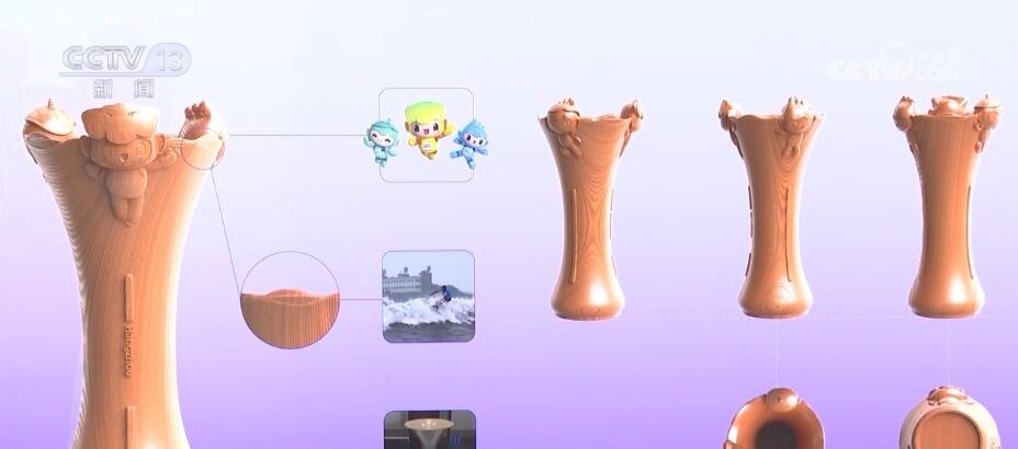 頒獎托盤設(shè)計(jì)靈感則來源于微風(fēng)中波動的西湖水面,結(jié)合本屆亞運(yùn)會核心圖形“潤澤”中的飄逸絲帶意向,整體給人流動的感覺。