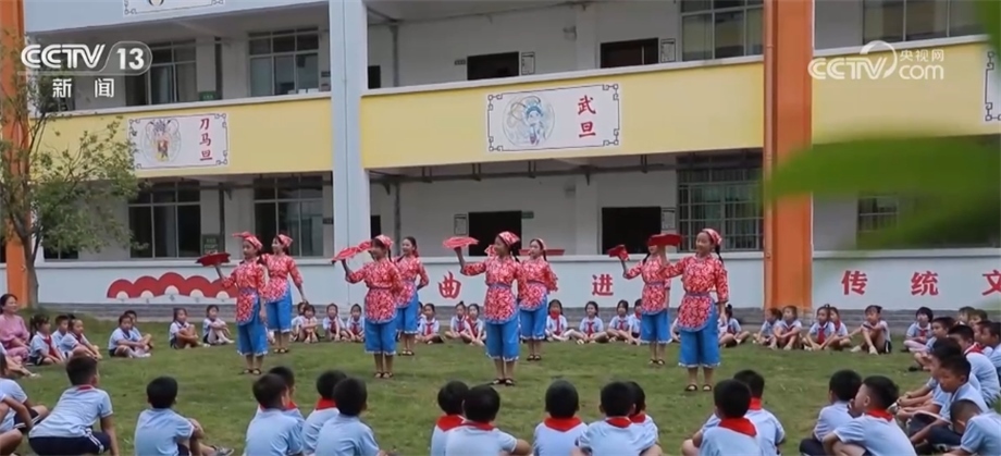 在湖南省永州市蘋洲小學(xué),一場花鼓戲表演正在進(jìn)行。學(xué)生們化身“小戲骨”,把“唱念做打”基本功表現(xiàn)得淋漓盡致?;ü膽蚴菄曳俏镔|(zhì)文化遺產(chǎn)之一,今年暑假,永州市蘋洲小學(xué)將學(xué)唱花鼓戲作為學(xué)生的暑假作業(yè)之一,學(xué)生們自行組隊進(jìn)行排練,開學(xué)第一課就成了孩子們展示暑假作業(yè)的表演專場。