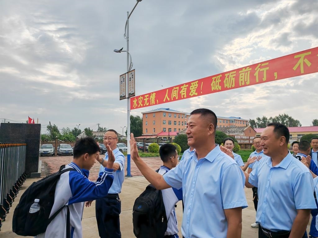 清晨,黑龍江省延壽縣第四中學(xué)的教職工排成兩列,迎接學(xué)生們返校。學(xué)生們背著書(shū)包陸陸續(xù)續(xù)進(jìn)入校園,依次與教職工擊掌。“老師好”“四中歡迎你們”“開(kāi)學(xué)快樂(lè)”等祝福此起彼伏。