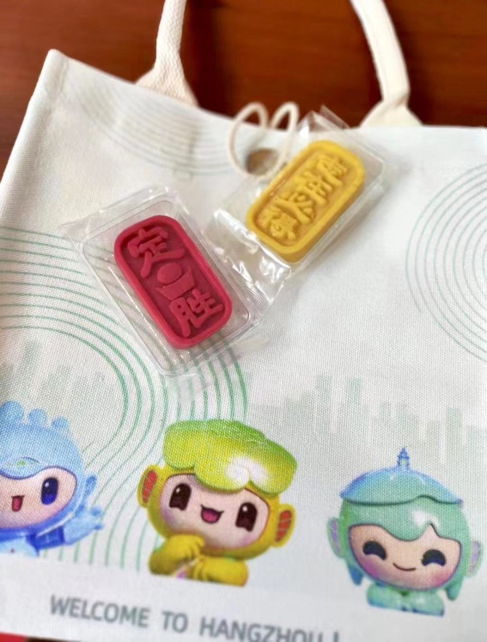 “志愿者們可以在手賬本上記錄志愿服務(wù)過(guò)程中的點(diǎn)點(diǎn)滴滴,留下美好的亞運(yùn)回憶;特制的行李卡牌可以幫助他們標(biāo)記自己的物品和行李;而一紅一黃兩塊定勝糕上面分別寫有‘定勝’以及‘志在必得’的字樣,則是為他們加油打氣?!焙贾輥嗊\(yùn)村人事與志愿者管理中心副主任、浙江外國(guó)語(yǔ)學(xué)院團(tuán)委書(shū)記邱萍說(shuō)。