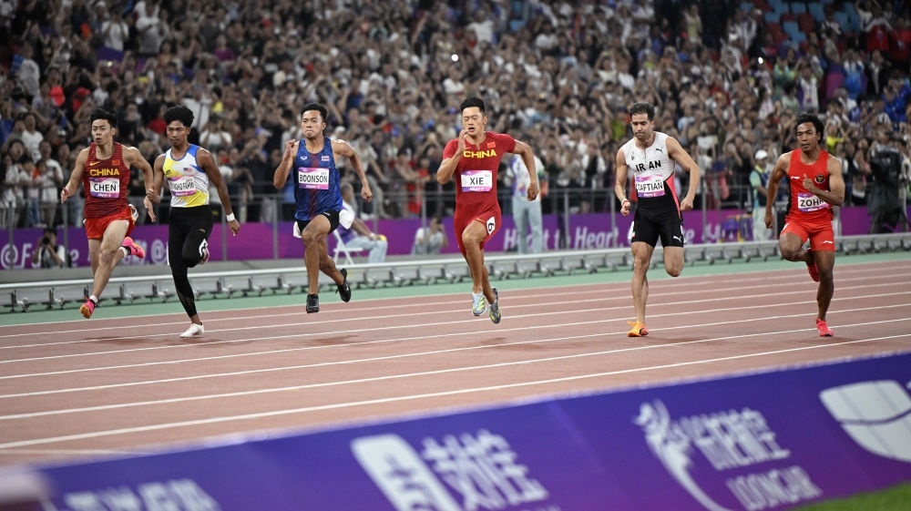 率先進行的女子100米決賽中,面對曾經(jīng)在今年亞錦賽上戰(zhàn)勝過自己的新加坡名將佩雷拉,扎著“哪吒頭”的葛曼棋頂住壓力,憑借強有力的沖刺以11秒23率先撞線。隨后的男子決賽,名將謝震業(yè)戰(zhàn)勝了對手,也戰(zhàn)勝了自己。9秒97的奪冠成績是他繼2018年之后,時隔5年再次突破10秒大關(guān)。雖然2.4米每秒的順風風速讓他的成績不能被計為達標巴黎奧運會的有效成績,但謝震業(yè)賽后表示,雖然超了風速,但是成績就在這里,戰(zhàn)勝了自己心里就沒有遺憾。
