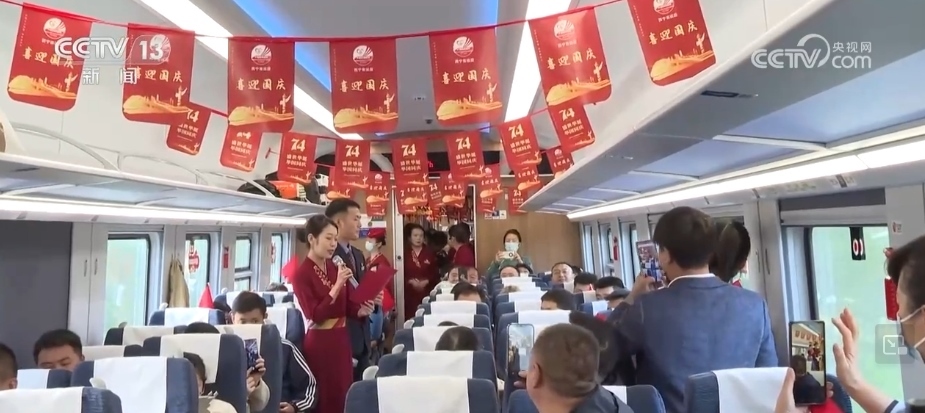 央視網(wǎng)消息:2023年7月,在青藏鐵路投入運行的“復(fù)興號”列車,是我國首個在青藏鐵路上載客運營的動車組。假日期間,乘坐復(fù)興號列車,疾馳在青藏高原上,不僅可以沿途領(lǐng)略高原美景,還能觀看車上的特色節(jié)目表演,感受濃濃的節(jié)日氛圍。