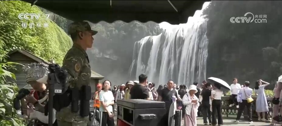 在貴州安順黃果樹景區(qū),武警官兵與景區(qū)做好聯(lián)控聯(lián)防、共享預(yù)警信息,確保遇有情況能快速妥善處置。