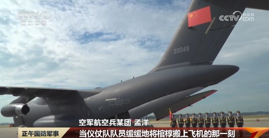 2022年9月,孟洋和機組成員駕駛運-20抵達韓國仁川機場,執(zhí)行接迎第九批在韓志愿軍烈士遺骸任務。